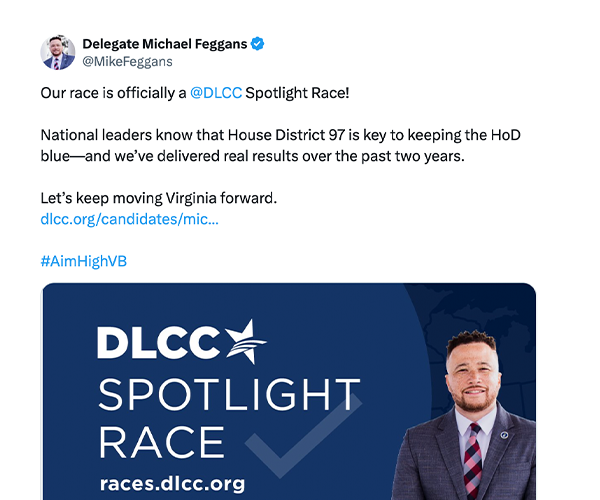 - The [DLCC] made the announcement in its “Roadmap to Victory in Virginia” memo, which included its first batch of House of Delegates target races in 2025. The initial target list includes the 21st, 65th, 84th, and 97th House of Delegates races. Additionally, the committee announced it is adding the state’s lieutenant governor’s race to its target map. The lieutenant governor could play a pivotal role in casting tie breaking votes in the state Senate, which is not on the ballot this year.