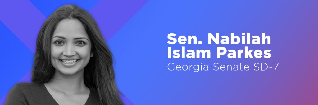 In 2022, Sen. Nabilah Islam Parkes became the first Muslim woman and the youngest woman ever elected to the Georgia Senate. This fall, she’s running for reelection to continue opposing the GOP’s attacks on LGBTQ+ rights and reproductive health care. As a senator, Nabilah has sponsored legislation to raise the minimum wage, keep children safe from guns, and defend reproductive freedom.