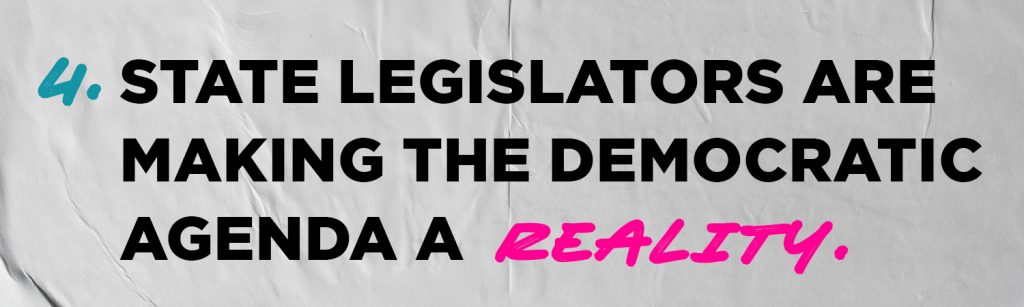 State legislators are making the Democratic agenda a reality. Our progressive policies stand in stark contrast to Republican extremism. From protecting reproductive freedom to expanding voting rights to fighting book bans, Democrats in state legislatures are on the frontlines of the issues that matter most. They’re defending abortion providers, securing LGBTQ+ rights, banning assault weapons, increasing their state’s minimum wages, and establishing the right to access birth control, even when the U.S. Senate won’t. There has never been a more important year to build Democratic power in the states.