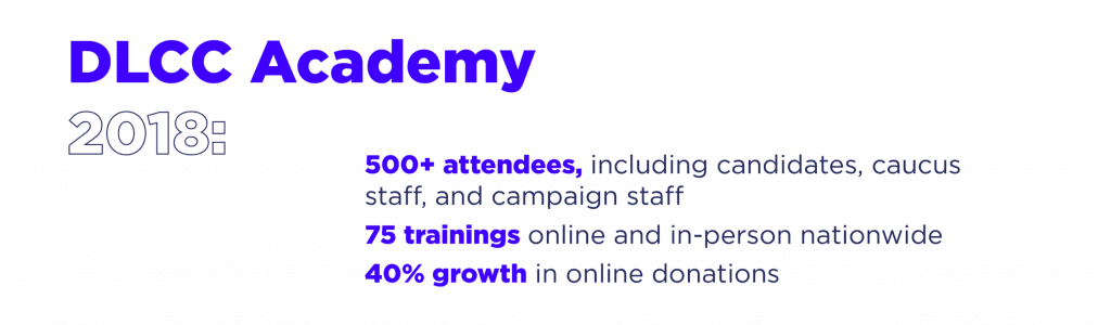 Over the last two years, we held 75 in-person and online training sessions, teaching more than 500 staffers and candidates everything from fundraising to field programs to communications. Participants in our digital fundraising training saw on average a 40% increase in their grassroots donations (which is a BFD at any level of the ballot). We’re already working to expand this program and bring it to more states in 2019 and 2020.