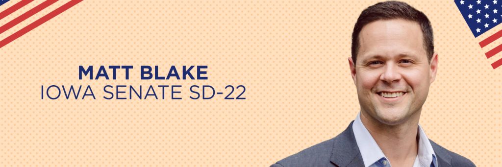 Iowa is one of the many GOP-controlled states where Republican legislators have forced through deeply unpopular, extremist abortion bans that are wildly out of step with the majority of voters. That’s why Matt Blake is running for the Iowa Senate to flip his district blue and bring common sense and mutual respect back to the statehouse. Matt is a member of his local city council and a Judge Advocate in the Iowa Army National Guard who is proudly pro-choice and committed to supporting women’s rights.