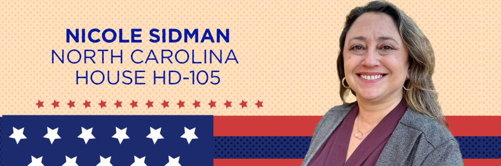 Nicole Sidman is running for the North Carolina House in a race that has garnered national attention. Her opponent, Rep. Tricia Cotham, is a former Democrat who ran for the North Carolina House two years ago on a pro-choice platform. But after winning her seat, Cotham switched parties giving North Carolina Republicans the supermajority they needed to override Governor Cooper’s veto power. Cotham then immediately cast the decisive vote to enact an unpopular 12-week abortion ban, the most restrictive attack on reproductive freedom in North Carolina in 50 years. This betrayal spurred Nicole into action, and she’s committed to fighting every right-wing effort to erode freedom.