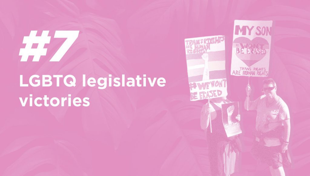 As the Trump administration waged an all out assault on LGBTQ rights, Democratic states made great strides towards protecting folks from discrimination based on gender identity and sexual orientation. There are now 21 states, including DC, that explicitly prohibit LGBTQ discrimination in employment, housing, education, and more; every state that doesn’t have LGBTQ protections on the books is controlled by Republicans in at least one legislative chamber. Maine, Colorado, New York and Massachusetts voted to ban conversion therapy, protecting minors from being subjected to this cruel and discredited practice. Nevada, Connecticut, and New York all outlawed the so-called gay and trans panic defenses, which deny LGBTQ victims justice and send the message that crimes against them are somehow justified. Since Trump became president, the DLCC has worked to elect nearly 100 LGBTQ candidates to state office, helping to pave the way for these critical human rights protections.