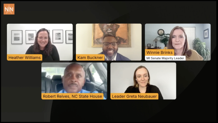 WASHINGTON — As part of this year’s Netroots Nation conference, the Democratic Legislative Campaign Committee (DLCC) hosted a virtual panel, moderated by DLCC President Heather Williams and featuring Illinois Speaker Pro Tempore Kam Buckner, Michigan Senate Majority Leader Winnie Brinks, Wisconsin Assembly Democratic Leader Greta Neubauer, and North Carolina House Democratic Leader Robert Reives.